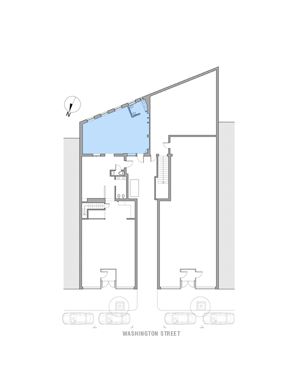 In the Fall of 2011, we completed our first day care facility – a Pre-Kindergarten addition for Little Children Schoolhouse.  The project consists of a 900 SF gut interior redevelopment of an underutilized storage space.  Situated in a tight urban infill site on busy Washington Street in Brookline Village – abutted by commercial, mixed-use  neighbors on both sides and single family residences in the rear – daylighting was scarce.  As such, we took advantage of the available roofscape to bring in light as well as additional HVAC service into the new rear addition.